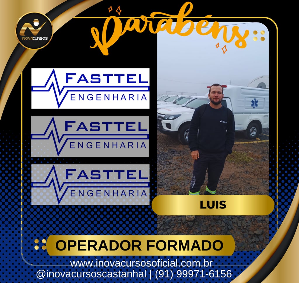 Aluno Inova Cursos Castanhal Luis, Consegue sua oportunidade em Santa Catarina na empresa FASTTEL ENGENHARIA.
